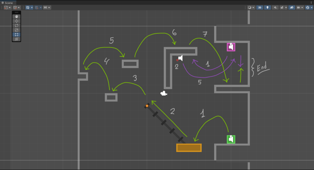 When designing the puzzles for Antimatter, I wanted to slowly teach new mechanics to the player while building on previous skills they’ve learned. Emulating the philosophy of ‘less is more’, each environment is the same size and shape. This posed a unique design challenge, and oftentimes forced me to thoroughly plan out the player’s movements to complete each level.